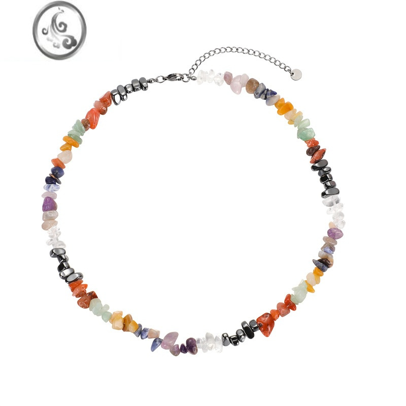 JiMi彩色石头项链小众个性水晶串珠链高级ins甜酷嘻哈锁骨链饰品...