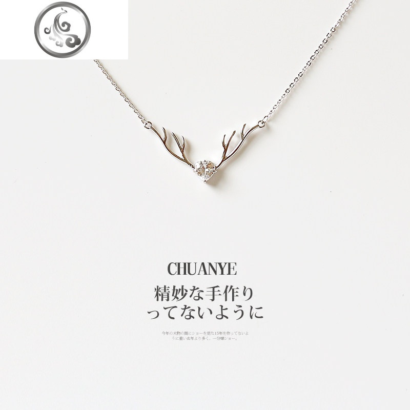 日系轻灵鹿角项链气质水钻合金吊坠锁骨链成人配饰...