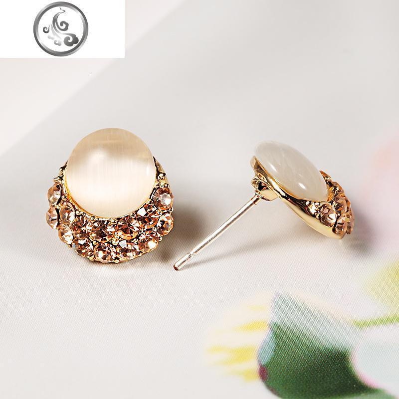 耳钉女纯银气质S925猫眼石镶钻耳环日韩国时尚耳扣耳饰品潮 JiMi 0940猫眼石银针