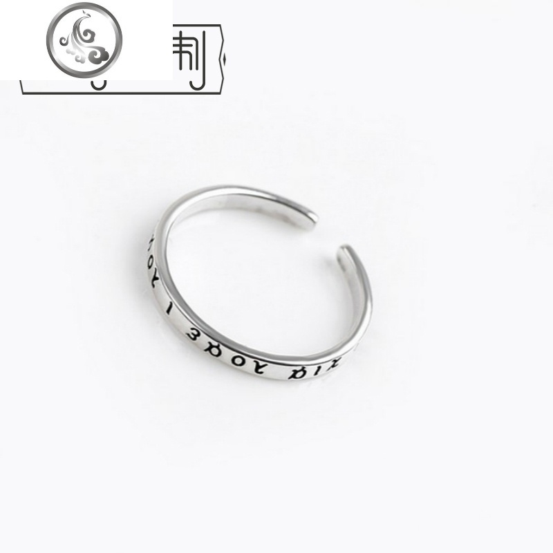 简约设计S925纯银饰品复古古希腊文字开口戒指...