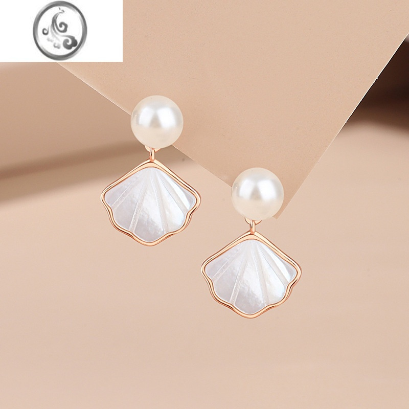 JiMi一贝子珍珠耳钉女款银银轻奢小众设计高级感百搭精致耳坠2023新款