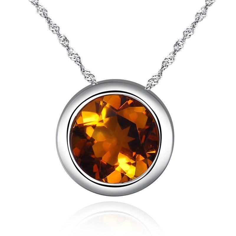 梦克拉Mkela 白18k金黄晶吊坠 暖阳 彩宝圆形刻面黄水晶 红色