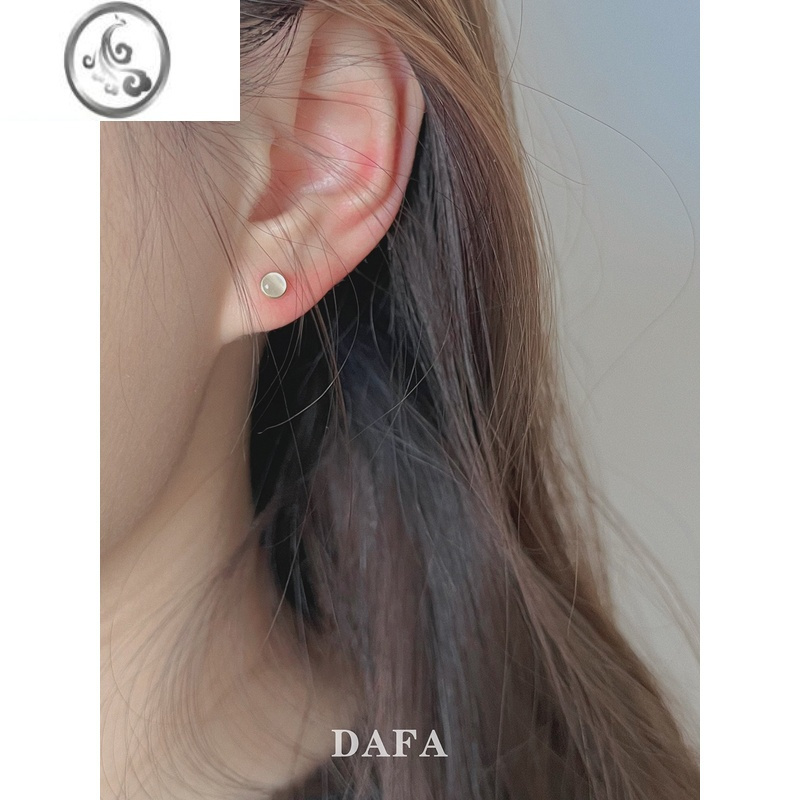 JiMiDAFA猫眼石耳钉 洗澡不用摘小众风简约白色石头14K注金耳骨钉