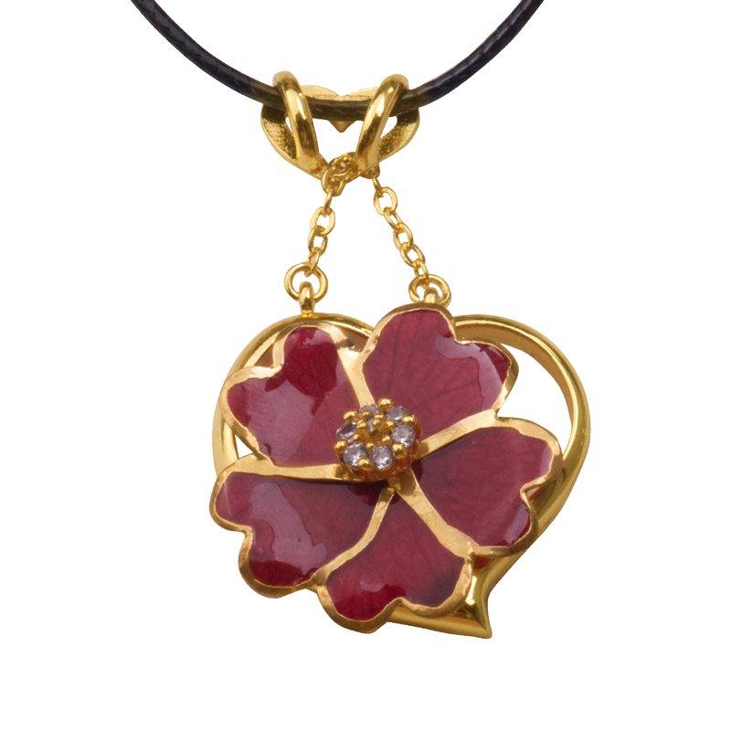 梦克拉 Mkela 鲜花玫瑰烤漆吊坠 爱心玫瑰花吊坠红色玫瑰花项链花朵吊坠女饰品 植物花卉 甜美可爱 红色